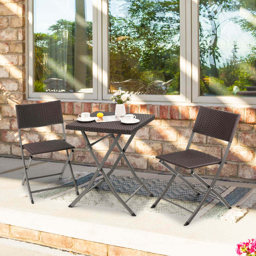 ● Better Outdoor Performance: Supported by the sturdy and rustproof steel frame, this patio bistro set not only ensures strong stability but withstands outdoor changing weather. Besides, the selected black/brown rattan is fade-resistant and sun-protective for better outdoor adaption.