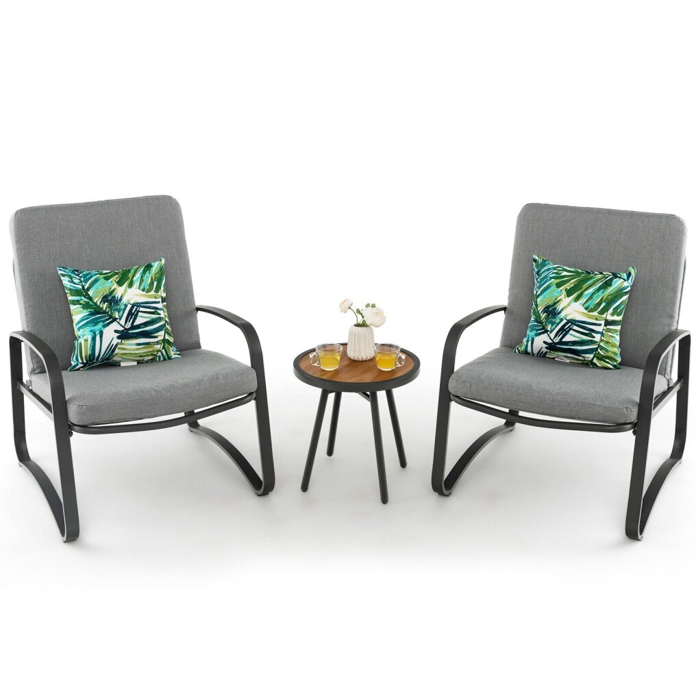 ● Sturdy Metal Frame: This outdoor bistro set is supported by the metal frame, which is stable to hold up to 330 lbs for each chair and 70 lbs for the coffee table and is rustproof to withstand changing weather.