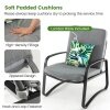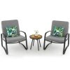 ● 3-piece Bistro Set: This patio conversation set includes 1 coffee table (16" Dia x 16" H) and 2 armchairs (29" L x 25" W x 29.5" H) that are suitable for different places, such as the front porch, garden, poolside and backyard, etc. Note: please do not tighten all the screws until all the holes are aligned while assembling.