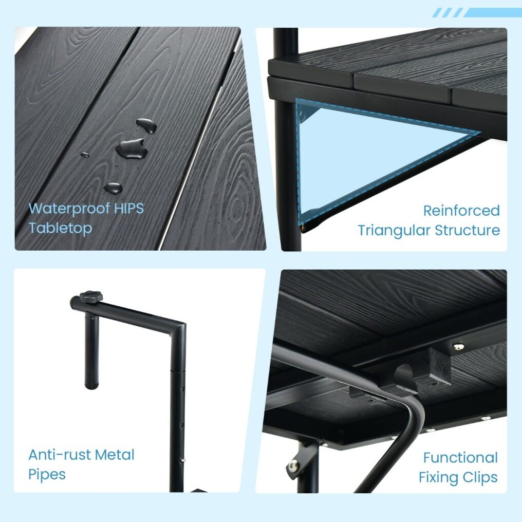 Born for Outdoors: Made of all-weather and colourfast HIPS tabletop as well as sturdy and anti-rust metal pipes, this railing serving table withstands changing weather for a longer outdoor lifespan.