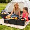 Classified Storage Space: 6 divided compartments, 4 front pockets, a mesh pocket for shoes, a large side pocket, 1 small side pocket and bonus bungee ropes enable this 18-gal storage box to accommodate groceries and kits in order. And the removable dividers allow you to use it in 1/2/3 compartments for more flexibility.