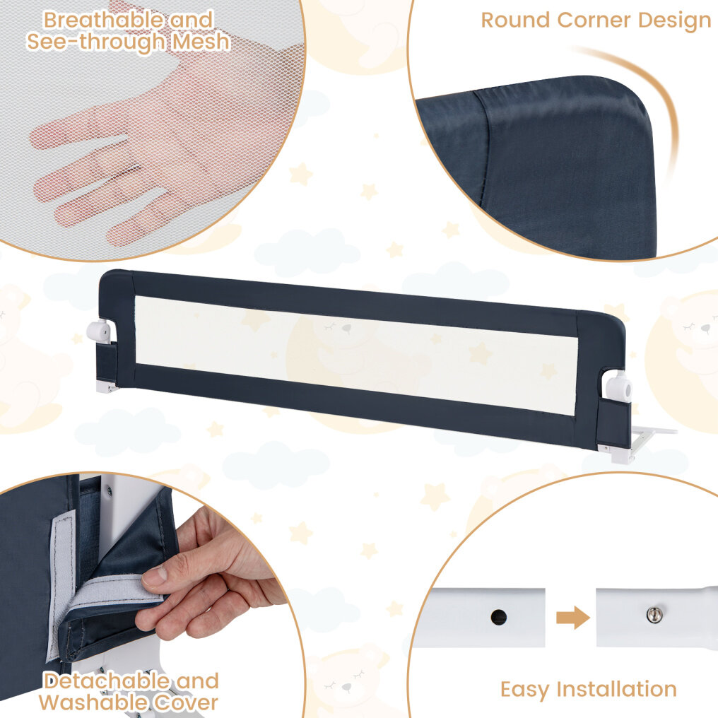 ● Thoughtful Details: This foldable bed rail for toddlers comes with breathable and see-through mesh, allowing you to observe the condition of your child at any time. Moreover, the detachable and washable cover makes cleaning work a breeze. It complied with ASTM and CPSIA, ensuring the whole safety.
