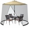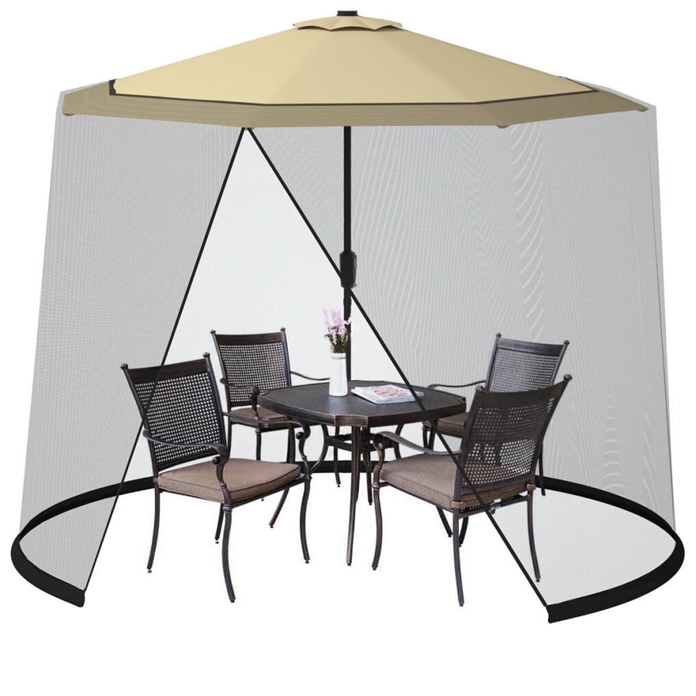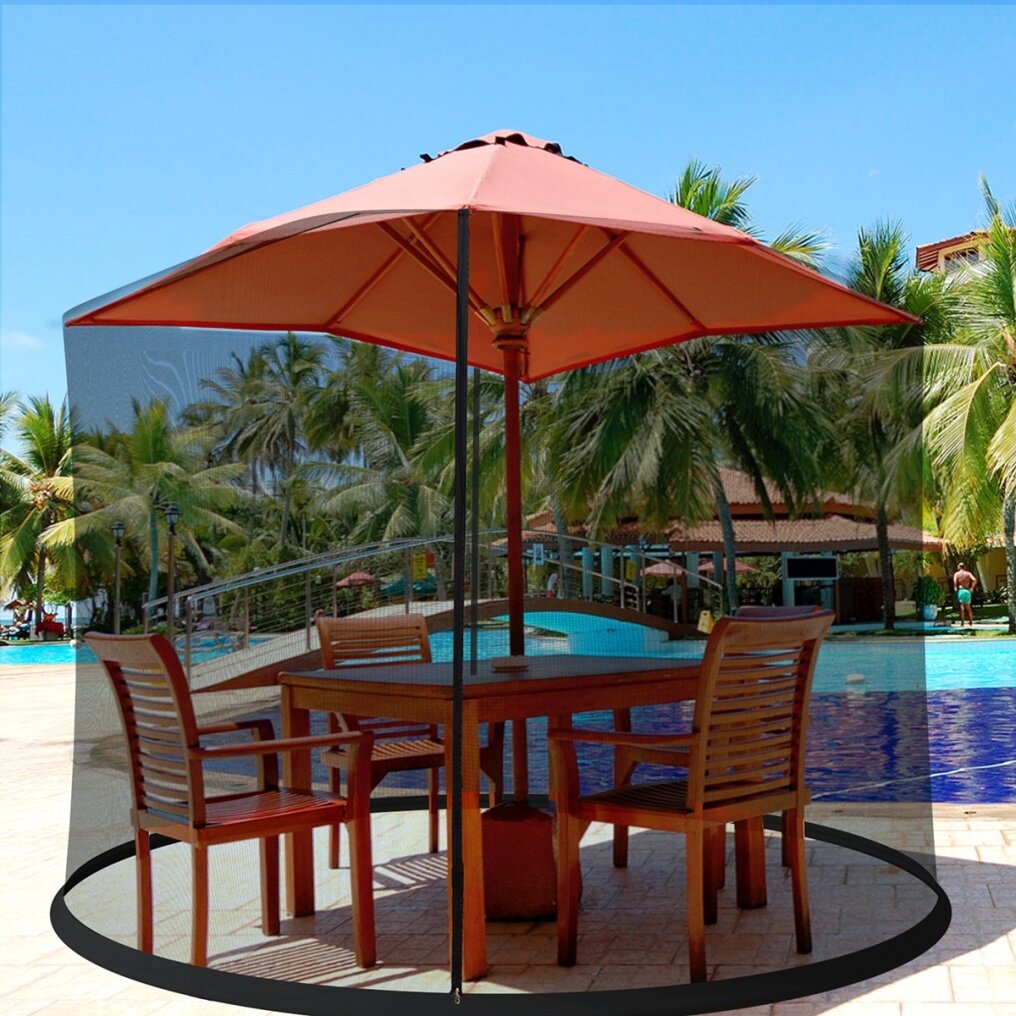 Filling the tubes along the base with water to help keep the screen in place. The adjustable top cinch closure provides a flexible fit. This Umbrella Table Screen covering is high-quality 100% polyester with a 75D mono filament thickness. It is dense enough to keep the bugs out while thin enough to preserve your view, and zippered entrance allows you easy access. At only 2.4 lbs, when not in use, the netting folds up to a compact size for convenient storage.