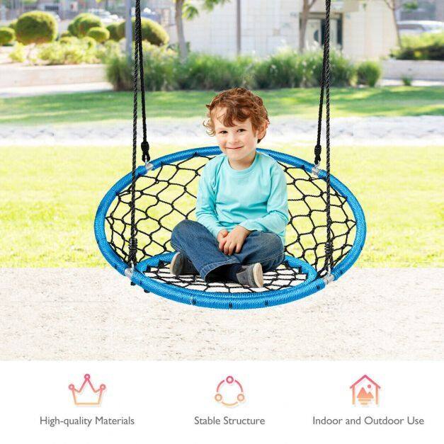 Multiple Functions for Various Situations: This round net chair swing can be used for many purposes, such as sitting, reading and playing. It will supply so much fun to both kids and parents! And it can be used in many places, such as backyard, park, tree, swing set and home.