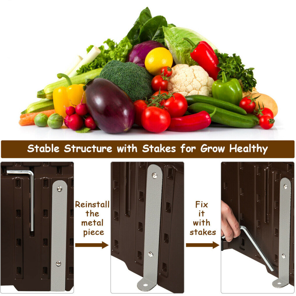 ● Stable Frame with Ground Nails: For keeping the garden bed stable, there are four ground stakes included. With these ground nails, you can firmly fix the planting box to the ground, so that without worrying about being blown away by the wind. Besides, four corner brackets are prepared to keep the panels in place.