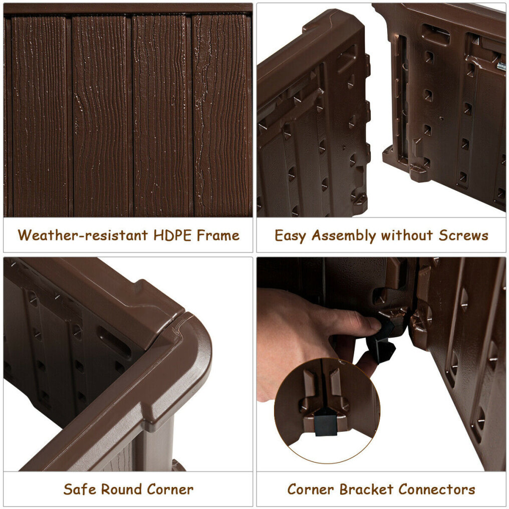 ● Weather-Resistant Materials: The garden box is made of HDPE, which is sturdy and durable for a long time worry-free using. Most importantly, thanks to the unique features of HDPE, this garden box is weather-resistant without worrying about rust. The panel of the garden box is integrally formed by a blow molding process.