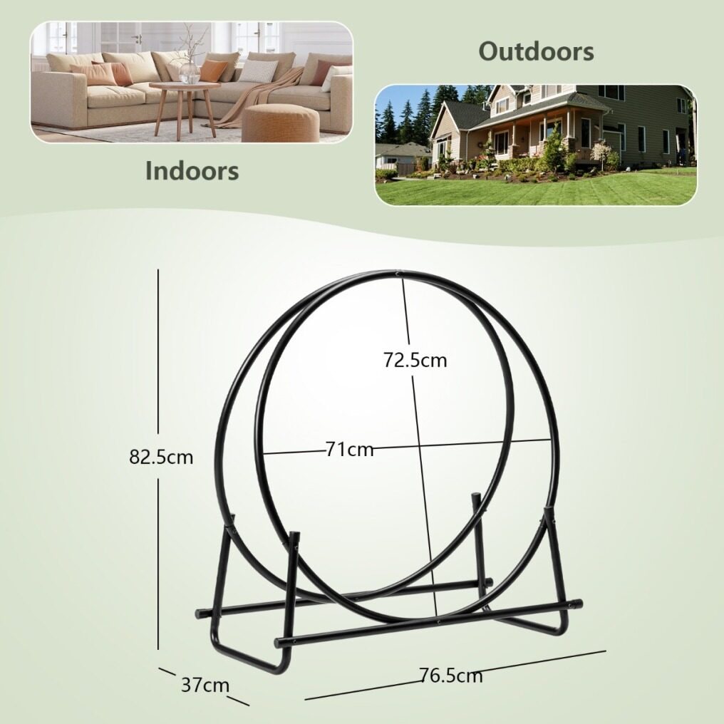 This 30-inch log hoop is perfect to store and dry your firewood. Made of black powder-coated steel, the firewood rack is sturdy and durable for long service time.