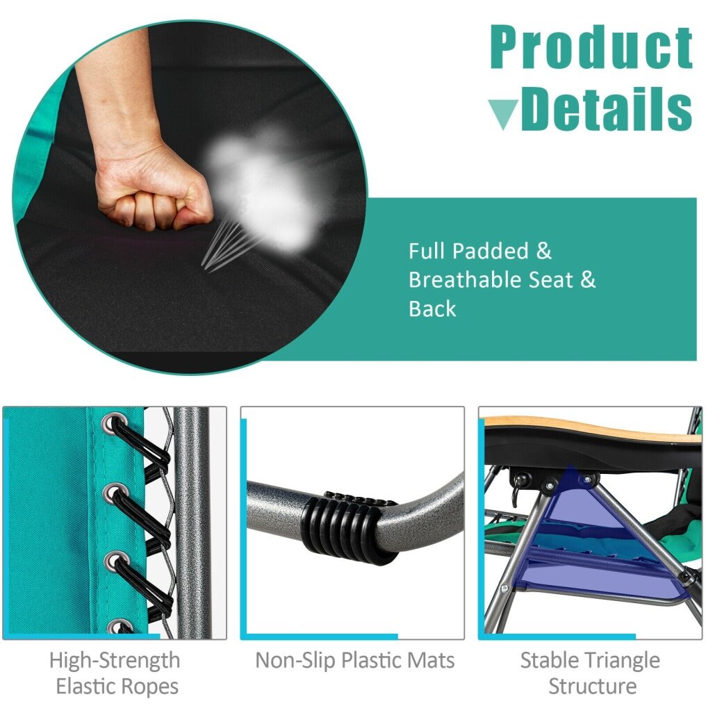 ● Durable for Long-Time Service: The reclining chair is made of high-strength oxford cloth, which makes it wear and tear-resistant, and also breathable to avoid heat accumulation. High-quality dual elastic rope is equipped on the chair to absorb shocks and make the chair more durable without break.