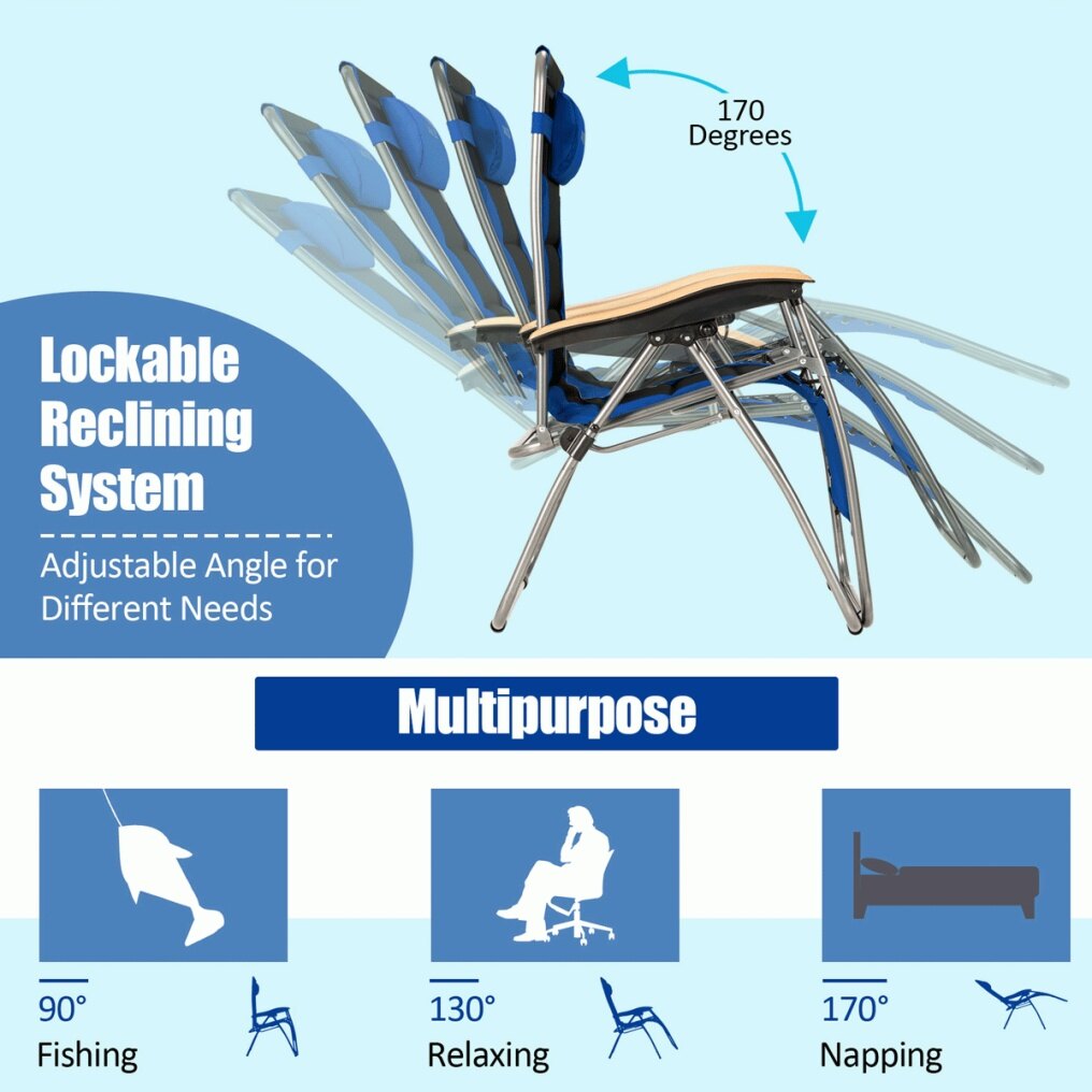 ● Lockable Reclining System: Our lounge chair can be stretched from vertical position to the maximum angle of 170 degree with smooth glide, providing you with zero-gravity comfort. Locks on both sides can keep the angle in place and meet your needs while you are fishing, relaxing, or napping.