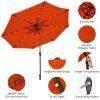 ● Bright Solar LED Lights: Equipped with 3 LED lights on each rib, this patio umbrella has a total of 24 built-in LED lights to help provide perfect lighting and romantic atmosphere at night. What's more, these lights are powered by solar panel on the canopy, which can save energy in a green and efficient way.