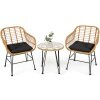 ● 3-Piece Modern Conversation Set: This outdoor wicker furniture set comes with 2 cushioned chairs and a tempered glass top table, which can create a cozy space for you to enjoy leisure times with a cup of coffee or tea. More, combining modern and simple designs, this bistro set is a perfect addition to your patio, porch, balcony, etc.