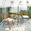 ● Durable Rattan and Sturdy Steel Structure: This patio bistro set are made of premium all-weather rattan which has strong toughness and wear-resistance and is not easily deformed for long lasting use. Besides, supported by a heavy-duty powder coated steel frame of anti-slip foot pads, this conversation set is very stable and robust.