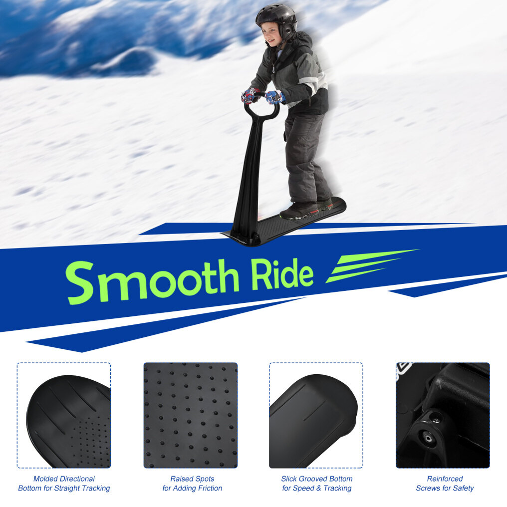 ● Versatile Uses: This snow scooter is designed for a fun and fast downhill acceleration at any snow-covered hill, dune, grass hill, and snow-covered flat sidewalk, bringing more fun and thrill for riders. The winter toy is an optimal gift for kids and teenagers whose age is over 5 years and weight is below 170lbs.