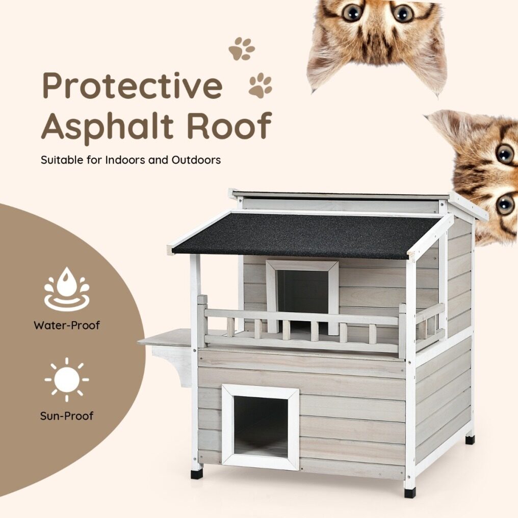 - Asphalt roof offers protection for the cat condo during rainy and scorching days
