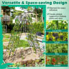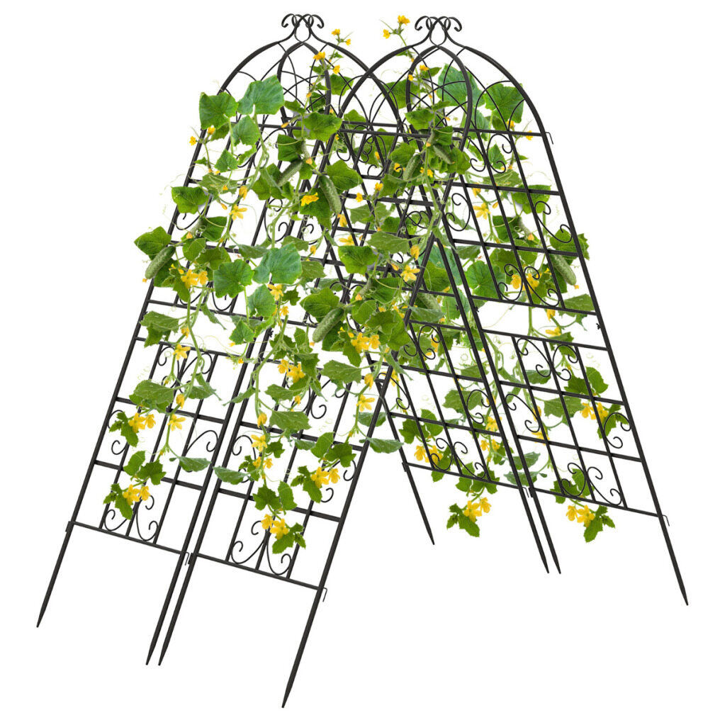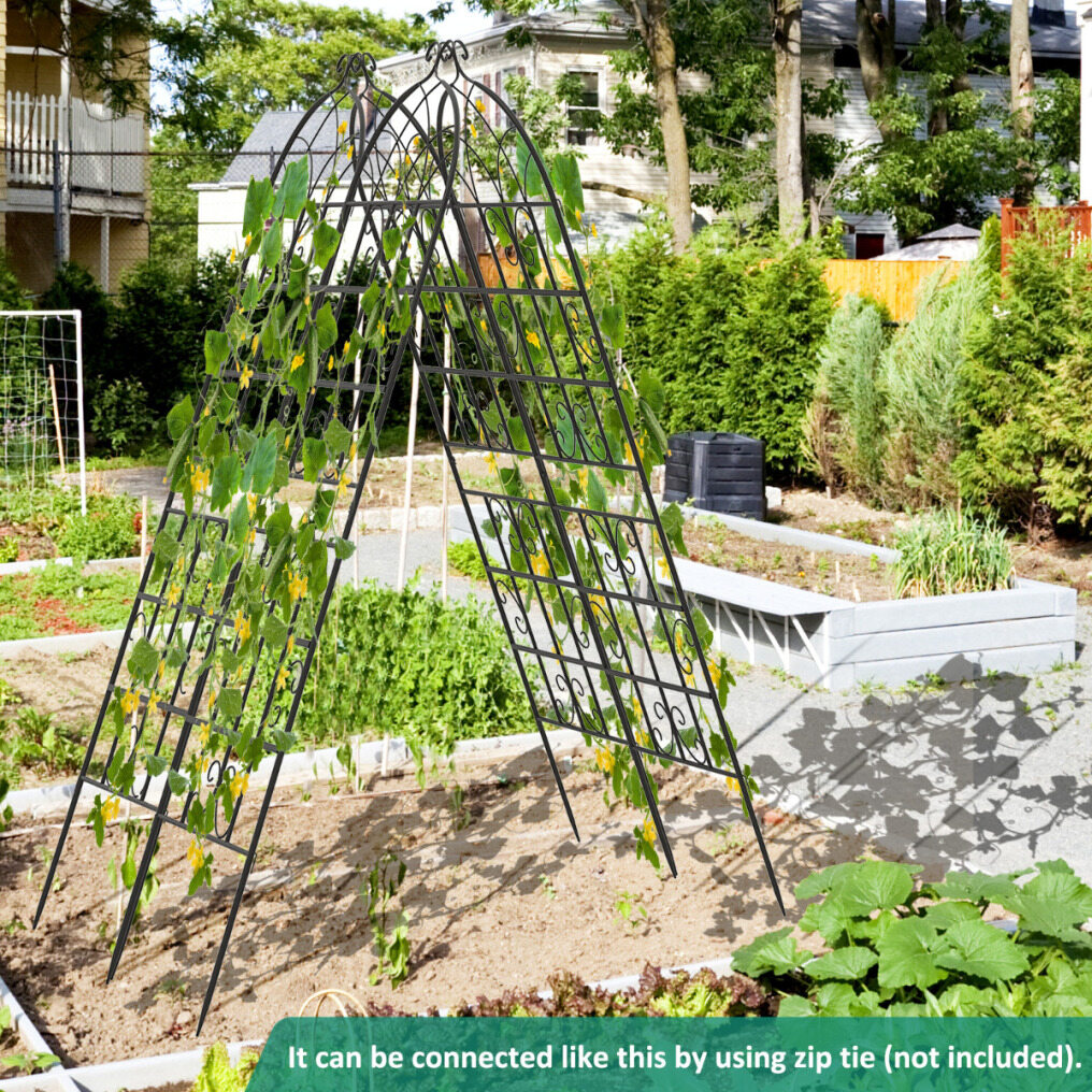 Versatile and space-saving design: The 4-pack of metal trellises can be combined into an A-frame, maximizing space utilization and providing room for growing cucumbers and short vegetables simultaneously. You can also use them as an animal barrier in your garden.