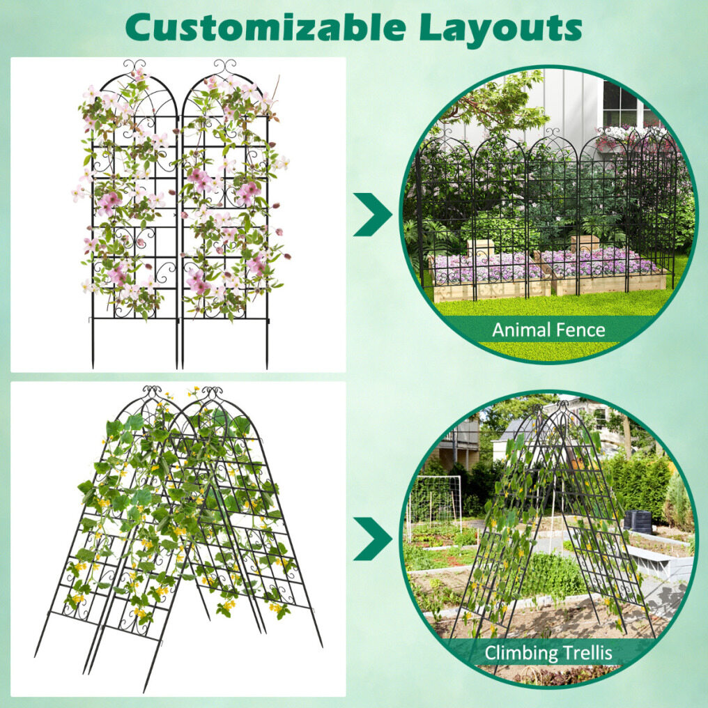 Charming and Customizable Decor: Featuring an elegant scalloped top and charming butterfly pattern, the wire mesh panel adds a retro touch to your garden, lawn, or yard. You can also flexibly arrange multiple trellises to create a variety of frame combinations to suit your specific needs.