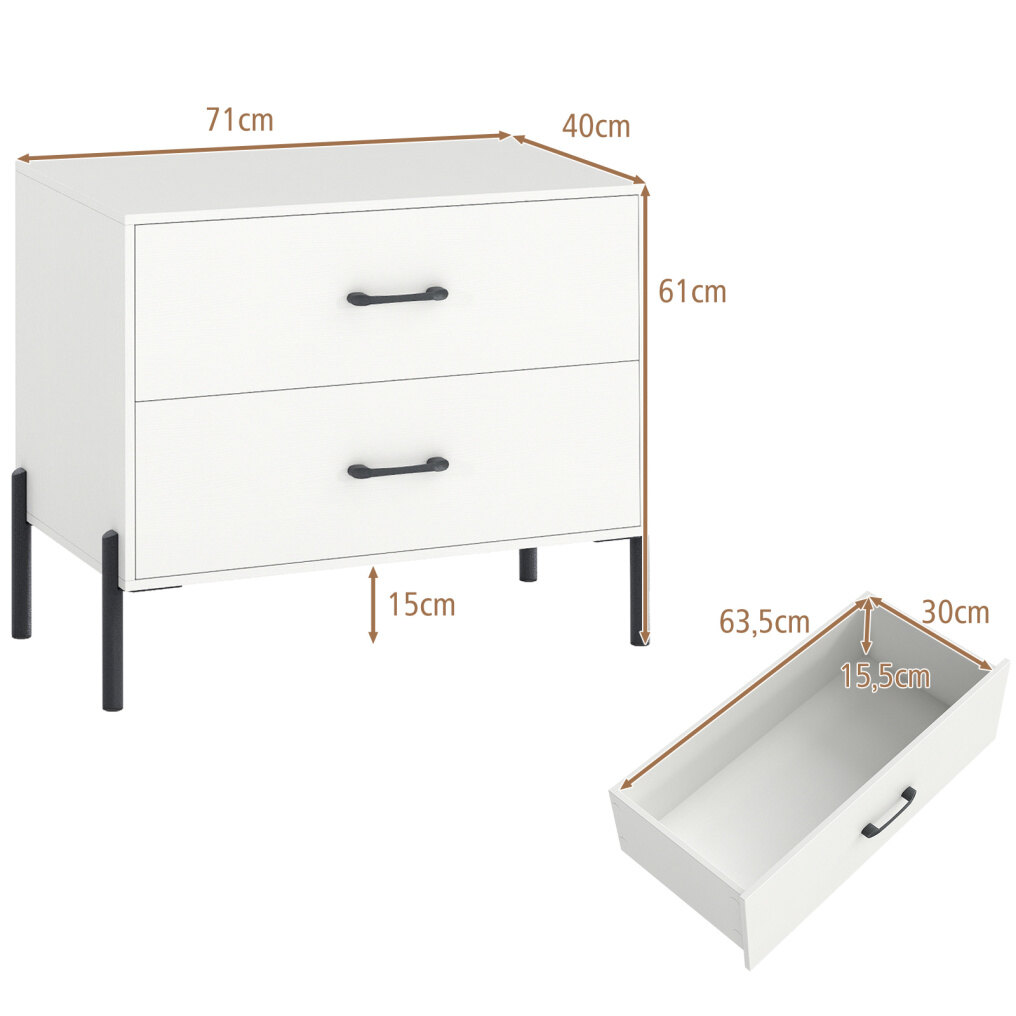 Functional Storage Solution: This drawer dresser features a spacious countertop to ensure easy access of your daily essential. 2 large drawers provide generous internal storage, helping you keep your living area neat and organized.