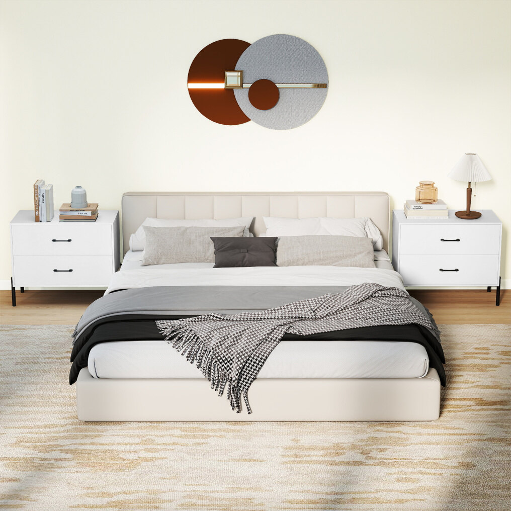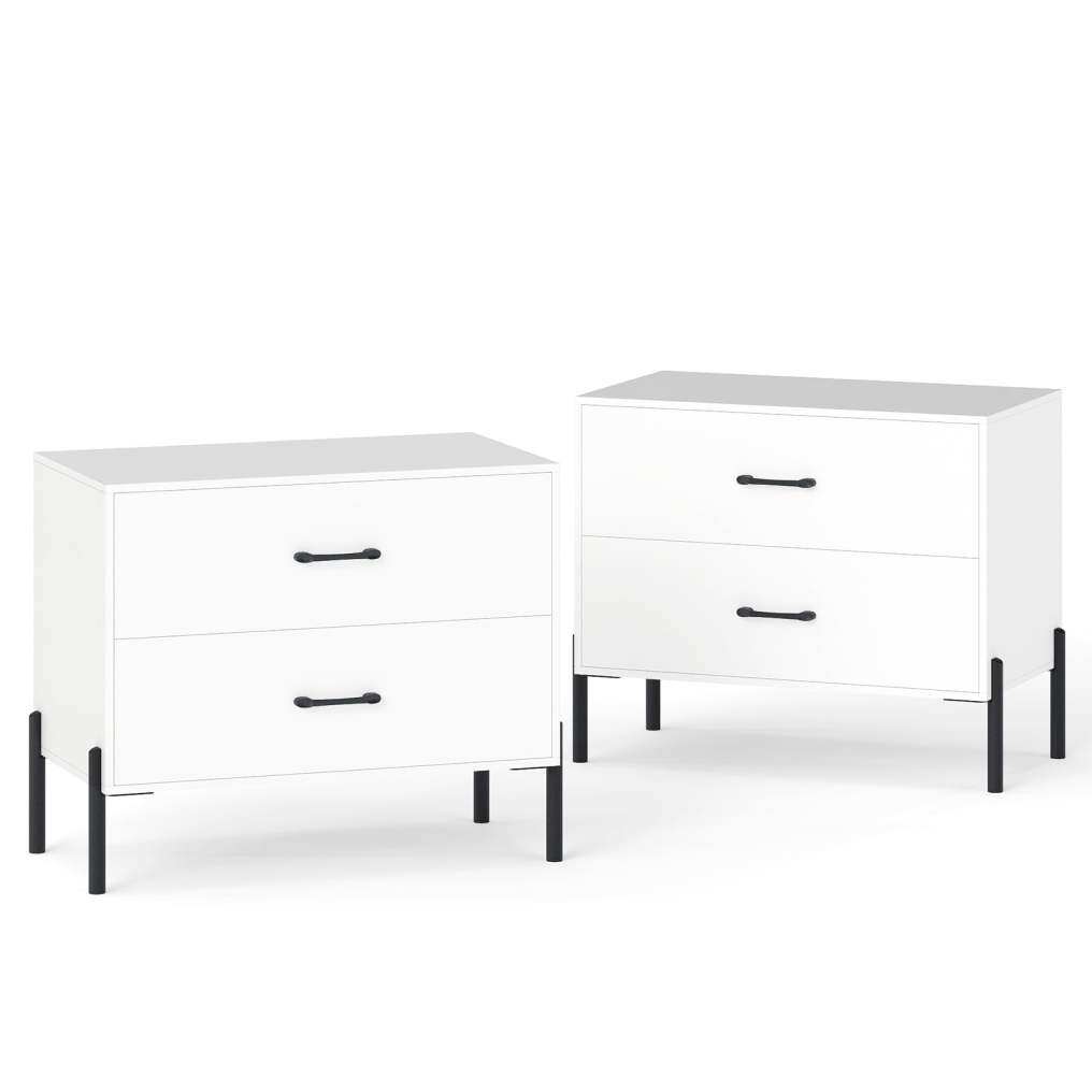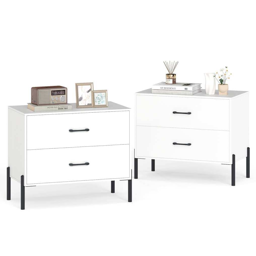 2-Drawer Dresser Modern Wooden Nightstand Set of 2-White