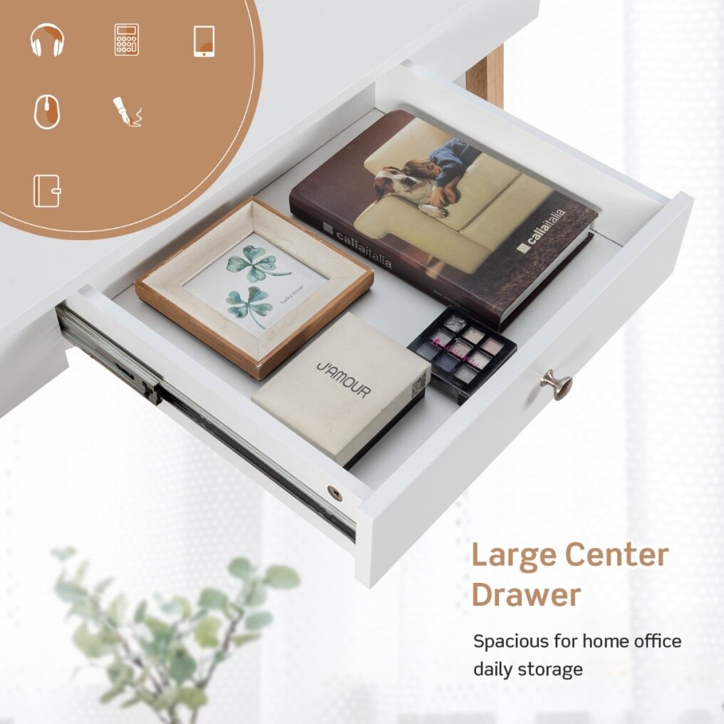 Modern Style & Thoughtful Details: Thanks to its exquisite workmanship and stylish design, this writing desk can fit well with any home decor and will bring a sense of elegance to your room. What's more, equipped with a delicate metal knob and smooth slides, the drawer of this desk is convenient and effortless to pull out.