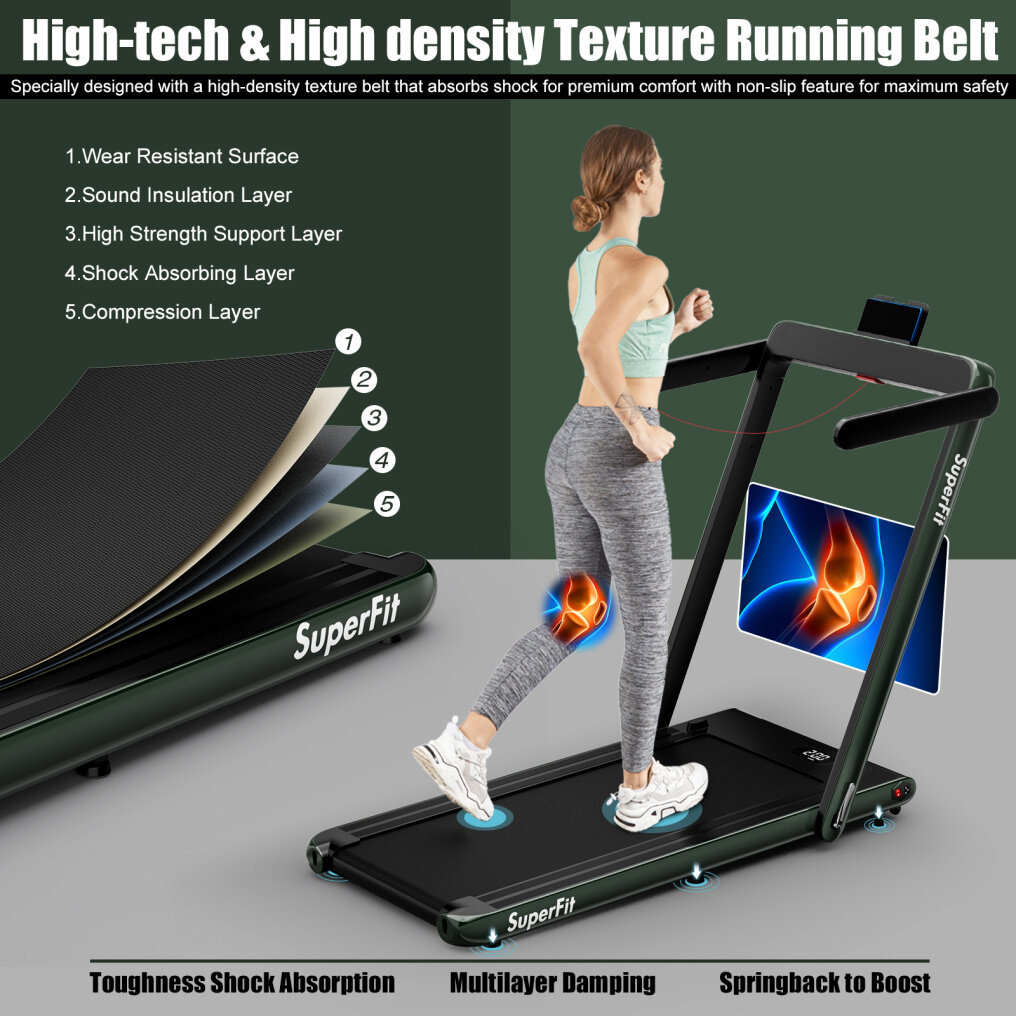 ● 2-in-1 Under Desk Treadmill: Compared to traditional treadmills, this foldable treadmill features 2 exercise modes: walking mode (0.6-2.5 mph), and running mode (0.6-7.5 mph). With a 2-in-1 design, this foldable treadmill is ideal for exercise while working or reaching daily workout goals, which is suitable for home and office.