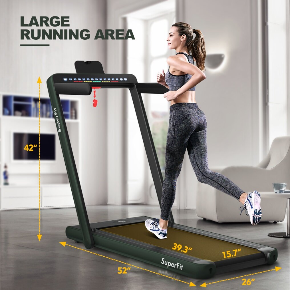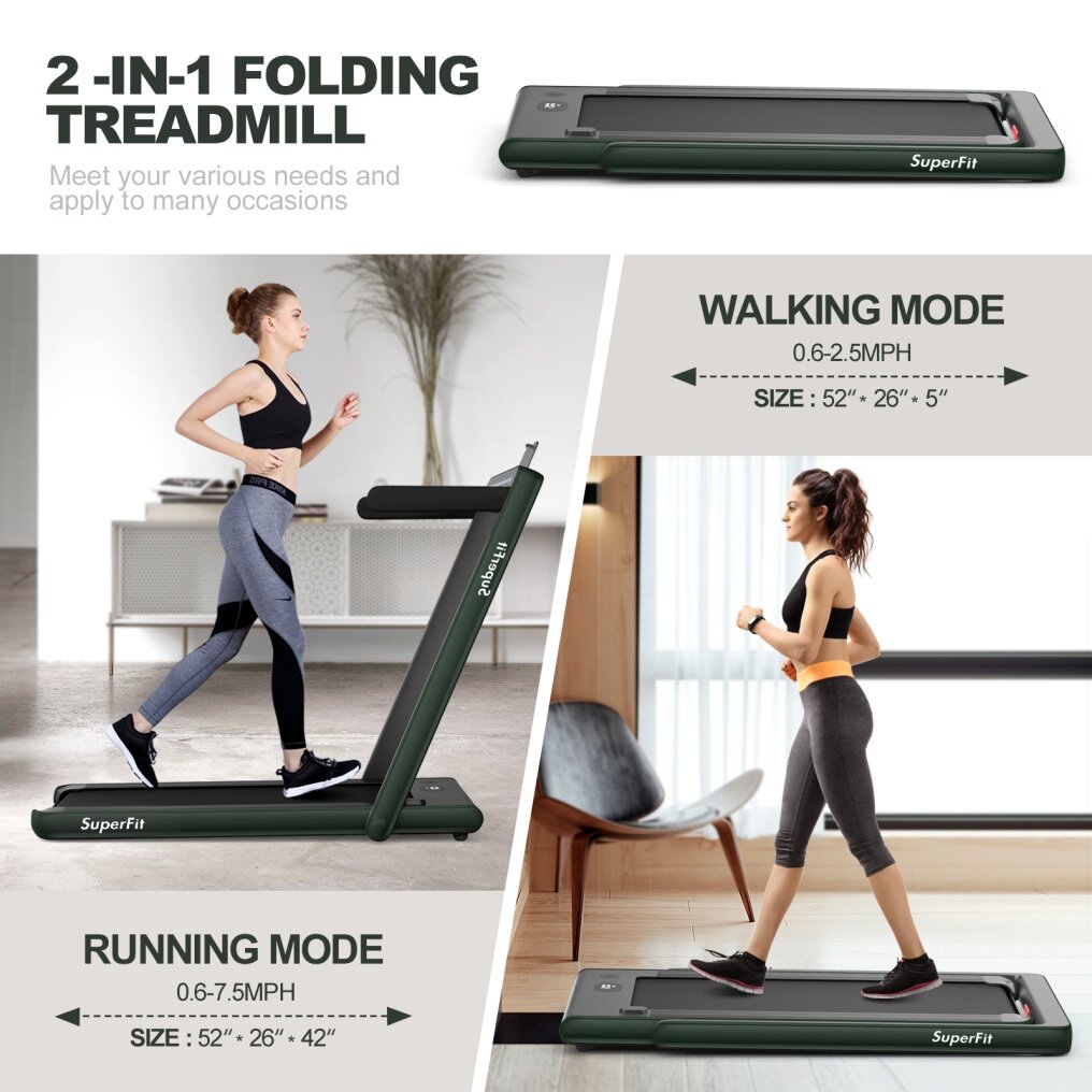 ● Innovative 2-in-1 Folding Design: It has 2 modes that can be used, for walking and jogging. When the handrail is folded, it can be used as an under-desk treadmill at a speed of 1-4 km/h. Unfold the handrail with its 1-12 km/h speed to enjoy running and reach the fitness goal.