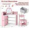 ● Large Storage Capacity: Designed with ample storage space, this dressing table set features 3 open shelves, a spacious countertop and 5 open compartments, perfect for storing cosmetics, toys, books and ornaments. Its unique corner design allows it to fit seamlessly into your room, saving your valuable space.