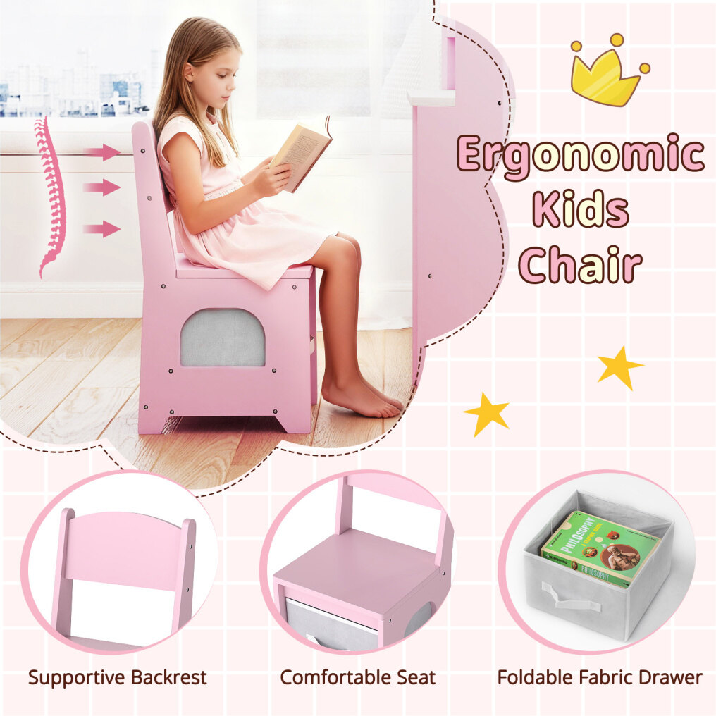 ● Chair with Foldable Drawer: This vanity table set includes a finely designed chair with an inclined backrest and a wide seat, ensuring ergonomic comfort for your little ones. Additionally, the non-woven fabric drawer under the chair offers extra storage, also foldable for flexible use.