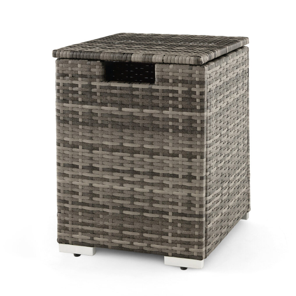 2-in-1 Patio Rattan Gas Propane Tank Cover for 20 lbs Propane Tanks-Gray