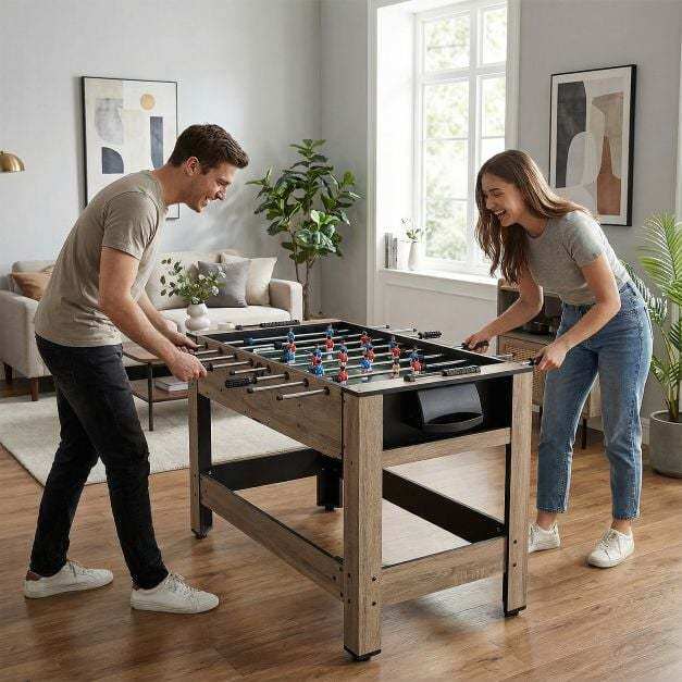 ● Complete Accessories: Arriving ready for action, the 2-in-1 game table set contains pool cues, billiard balls, triangle, chalk, brush, soccer balls, and a full squad of foosball players, ensuring immediate fun with all essentials included for your recreation room.