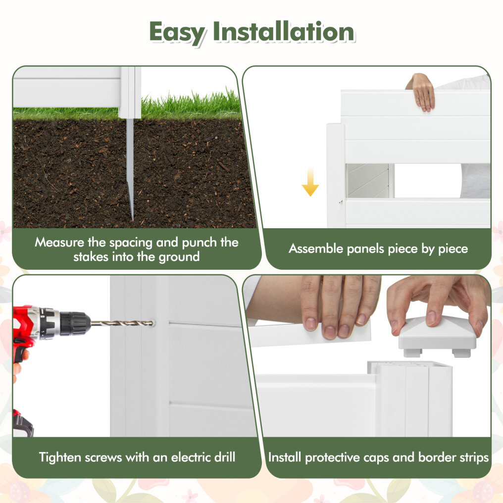 ● Multipurpose Use: The PVC privacy fences are versatile and adapt to various needs, working well as pool pump enclosures, trash can enclosures, garden fences, pet fences etc. Plus, they are suitable for porch, yard, pool and more places.