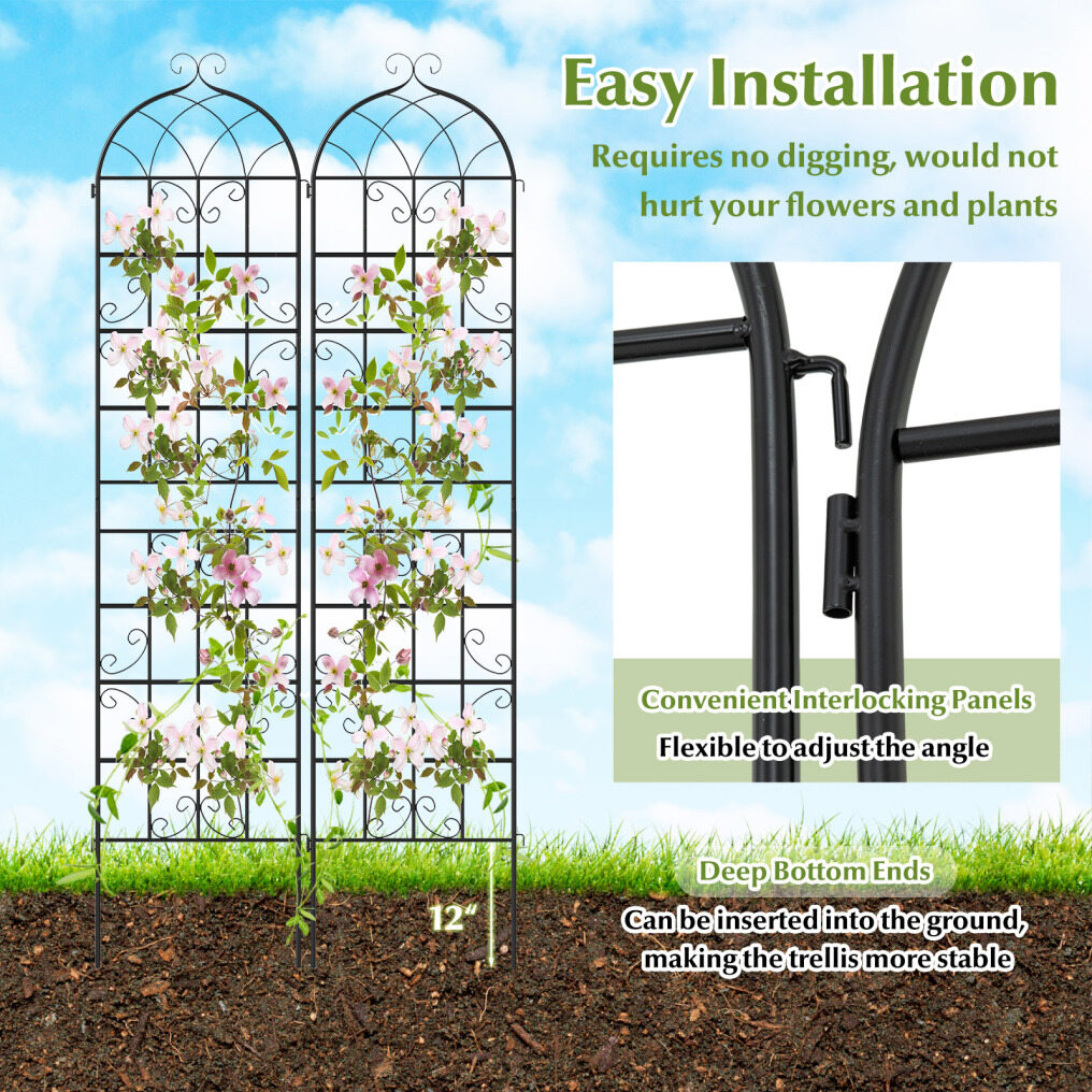 ● Enhanced Growth Support: Experience the benefits of a 7 ft/218 cm metal garden trellis, featuring 2 expansive panels, each measuring 20" x 86"/50 x 218 cm (L x H). This design not only maximizes sunlight capture but also provides ample space for climbing plants and vines to grow vertically and robustly.