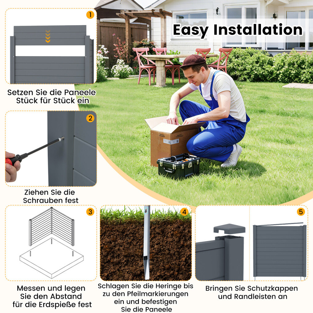 Easy assembly and maintenance: We offer clear and easy-to-understand assembly instructions that make installing the privacy screen panels for outdoor use a breeze. Furthermore, the smooth, easy-to-clean surfaces provide a clean and modern look for outdoor areas.