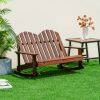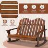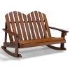 2 Person Adirondack Rocking Chair with Slatted seat-Brown