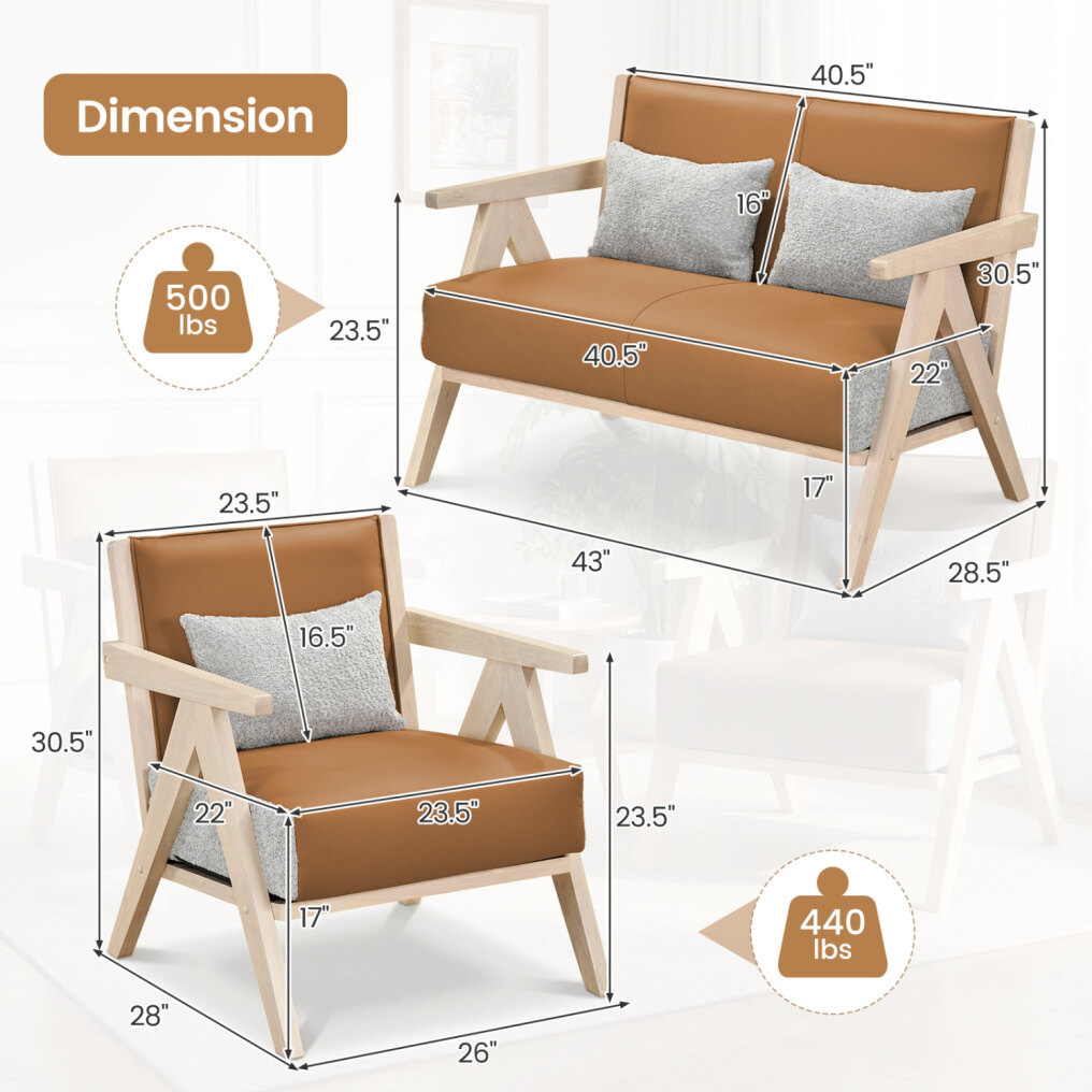 ● Heavy-Duty Structure: The solid rubber wood frame ensures durability and stability, ensuring long-lasting service and adding a touch of natural to your space. This single sofa chair supports up to 440 lbs, and the loveseat supports up to 500 lbs.