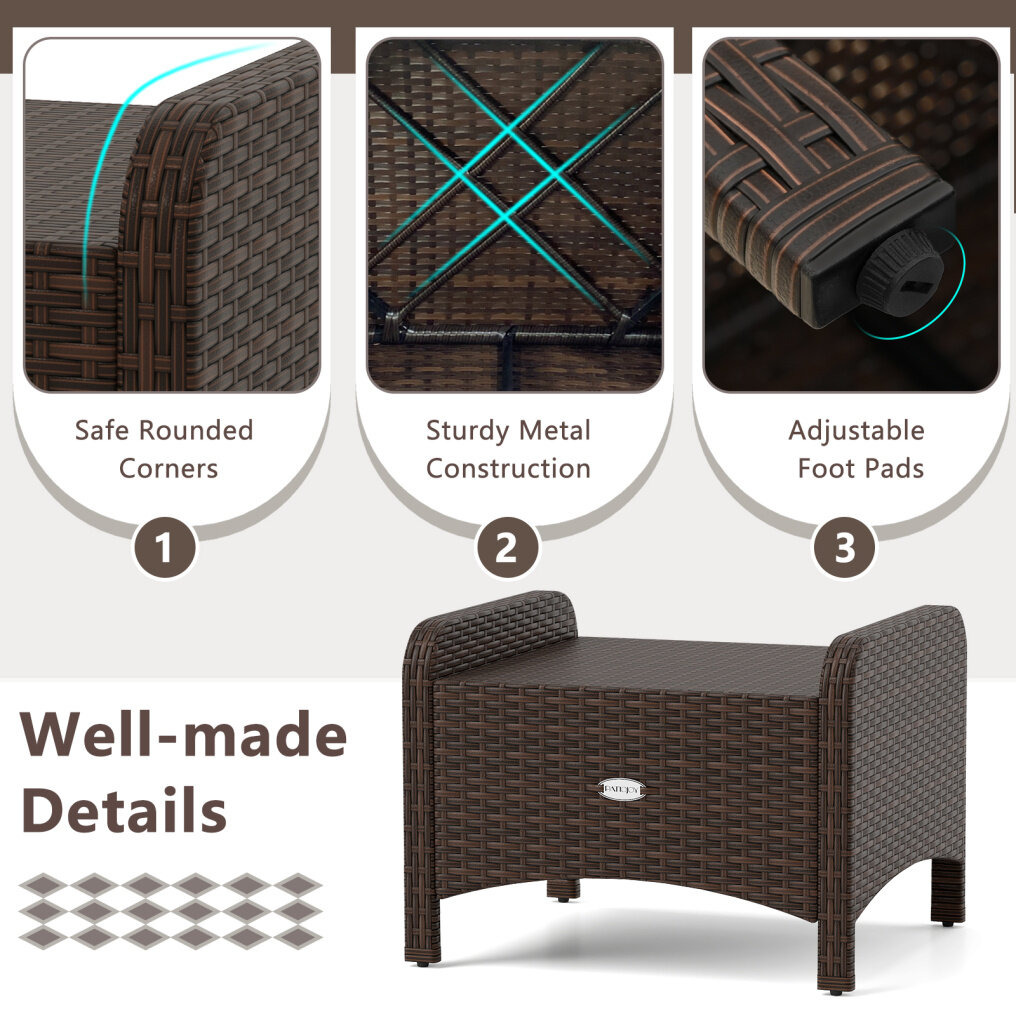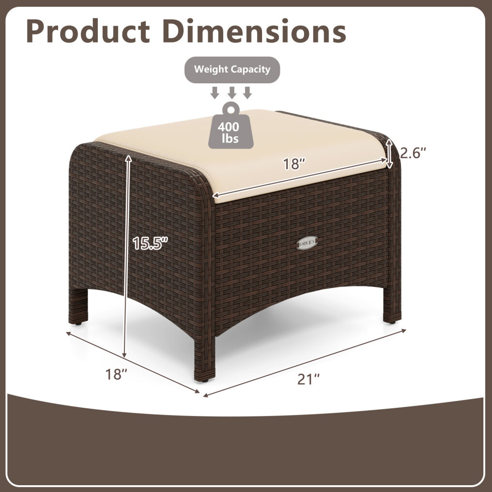 ● Perfect Dimensions: With dimensions of 18"L x 21"W x 15.5"H, these outdoor footstools are designed to fit perfectly with your existing patio chairs or sofas (not included) in your porch, garden or backyard. Please avoid rain exposure for prolonged service life.