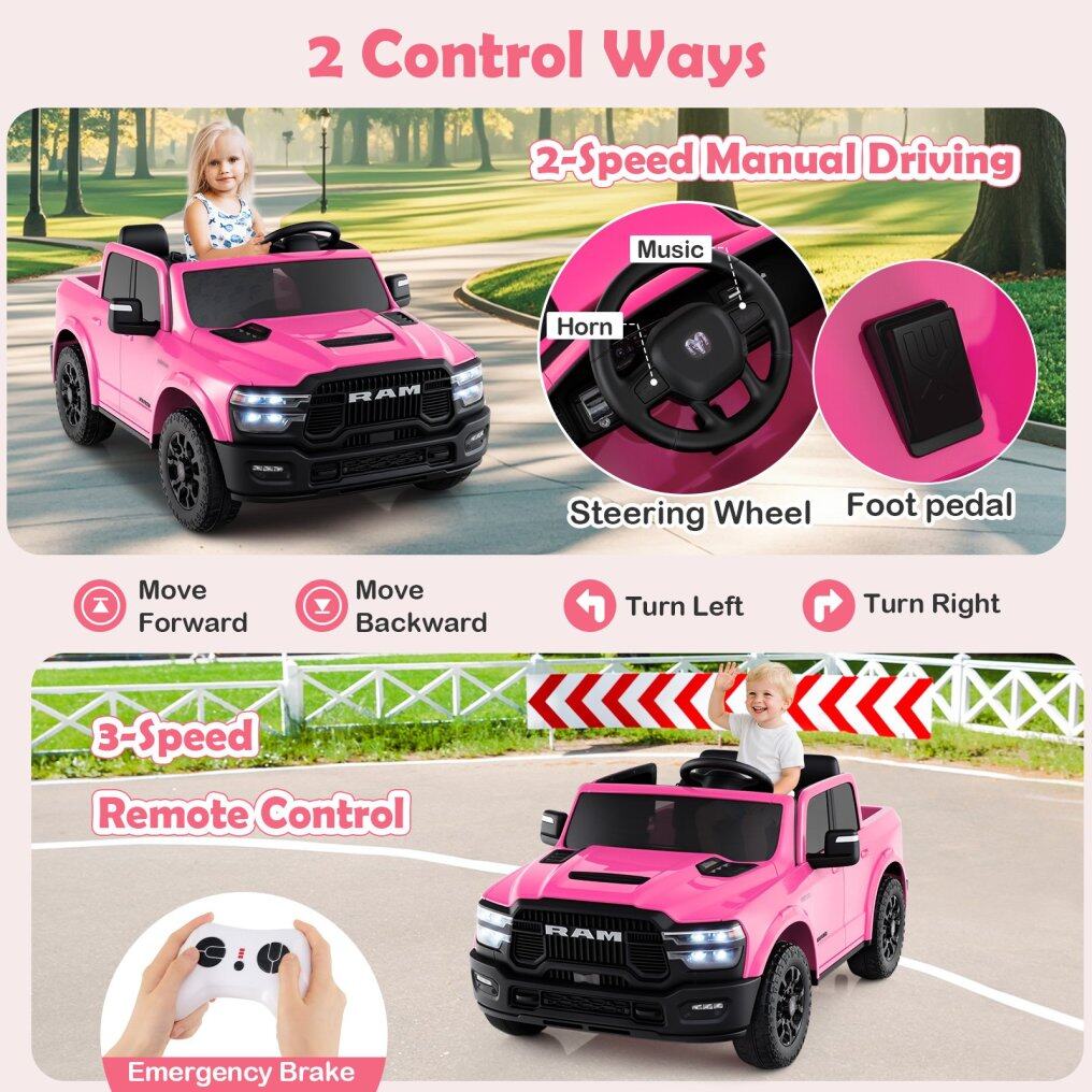 ● Licensed Ride on Truck: This licensed 2025 Ram 2500 REBEL ride on pickup truck boasts 2 × 100W motors, providing a 1.4-3.2 mph speed range to satisfy different needs. Powered by a 24V battery, the ride on toy keeps the adventure going on. Recharging is a breeze with the integrated charging port and included charger.