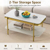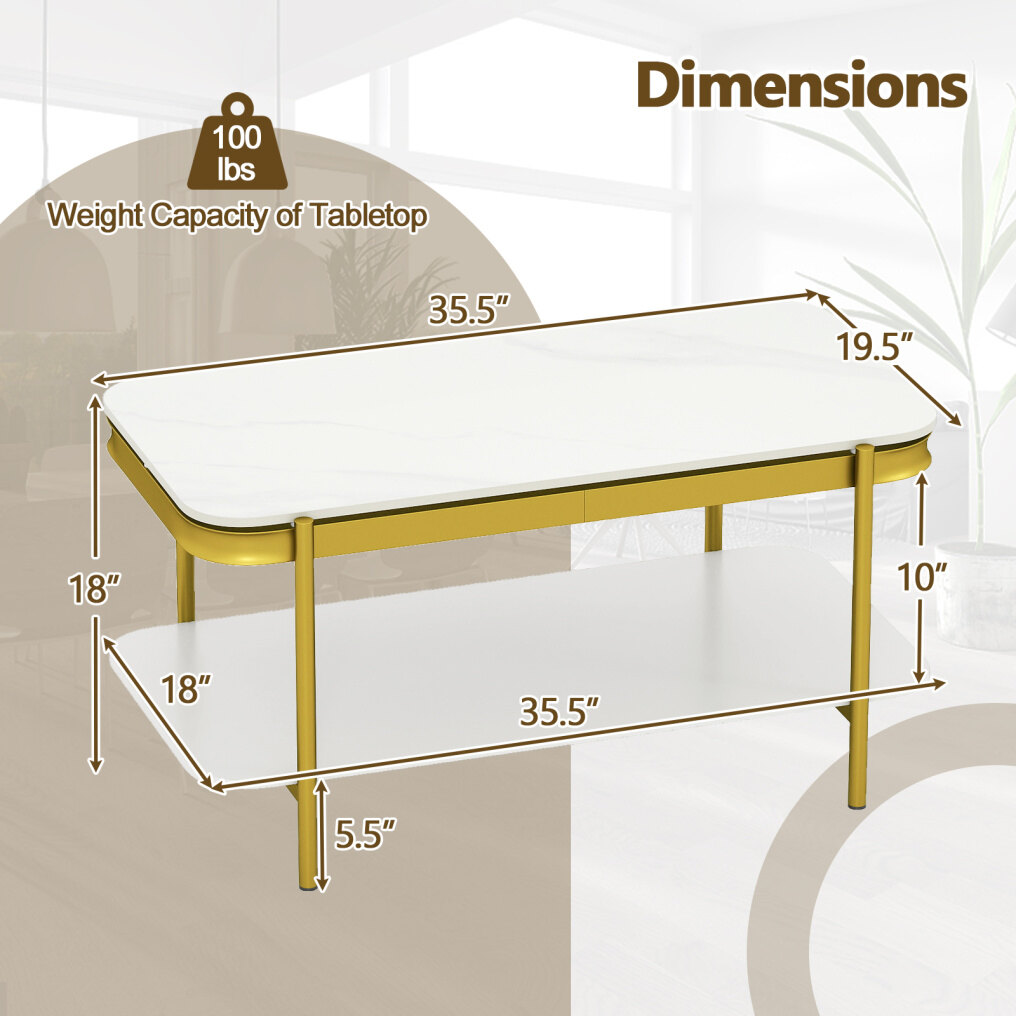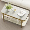 ● High-quality Sintered Stone Tabletop: The rectangular coffee table showcases a marble-veined sintered-stone surface that repels water, scratches, and heat, ensuring it stays flawless for daily coffee breaks and lively gatherings. Its luxurious sheen instantly upgrades your living space, drawing every eye.