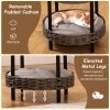 The wicker cat nest with 2-tier versatile design offers ample space for your cat to stretch, lounge, and play. This helps promote your cat's physical activity and overall well-being. The bottom nest includes a soft removable padded cushion that ensures plush comfort for your pet. The cushion is washable, making it effortless to keep the bed fresh and inviting. Crafted from PE rattan, the 2-tier cat house combines elegant charm and durability. The structure is supported by sturdy metal legs, which not only add to the overall durability but also enhance air circulation beneath the nest.