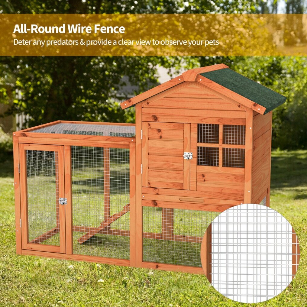 ● Solid Construction and Weatherproof Roof: The rabbit hutch is crafted with natural fir wood and painted with waterproof and non-toxic varnish, ensuring excellent durability and providing a safe and cozy house for your lovely pets. In addition, equipped with a premium asphalt roof that provides shade and protection against rain and sun.