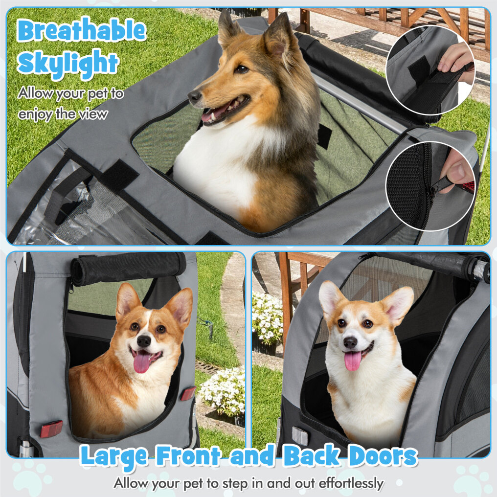 -2 large mesh doors with zippers help pets to get in or out of the bike trailer