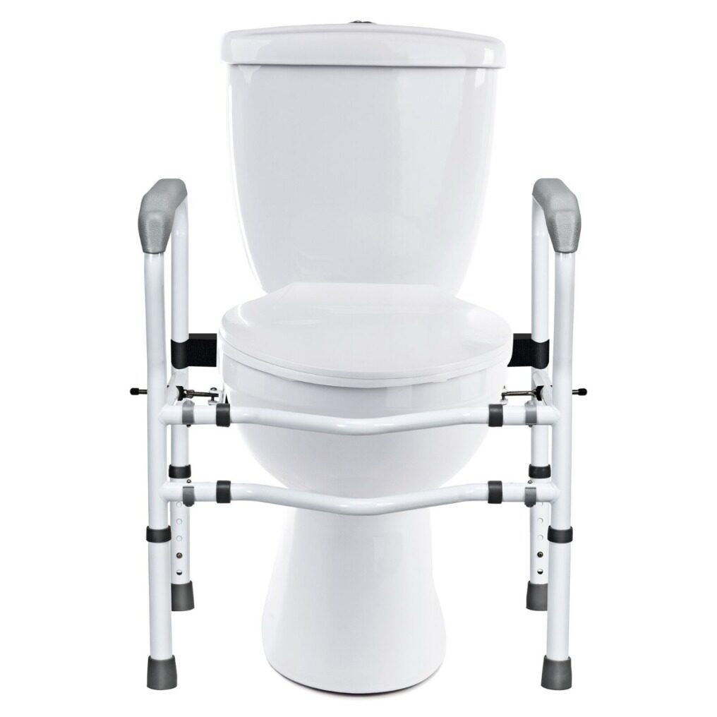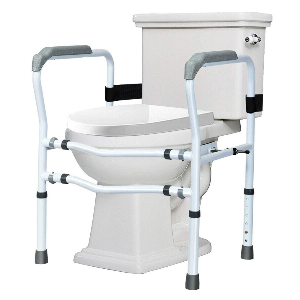 Adjustable Height & Width: Practically designed with 6-level adjustable height (63cm-76cm) and 2-level adjustable width (57/62cm), the toilet safety rail fits all types of standard toilets. When using, users can adjust the height or width to your desired position for comfort, and the toilet using space will not be limited due to the adjustment.