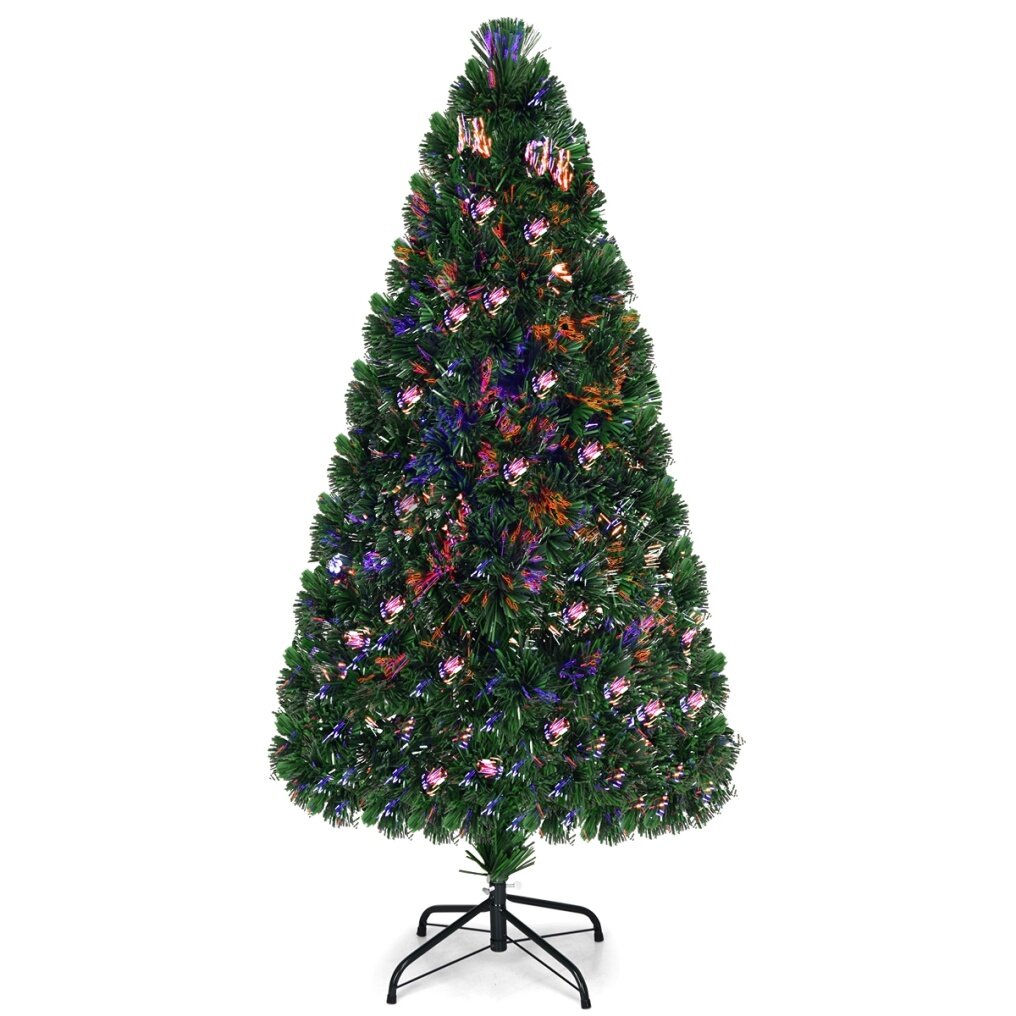 This fiber optic artificial Christmas tree is an ideal Christmas trimmings. With pre-installed fiber optic, powered by energy saving LED lights, gleam throughout the tree, will present 7 different colors and can alternate between 2 different sequences. The trees are in great quality, making it your best choice. The tips are sculpted to enhance the trees' lifelike appearance. In addition the staggered branches give the tree a fuller profile. High density plastic bases to keep the tree planted in an upright position.