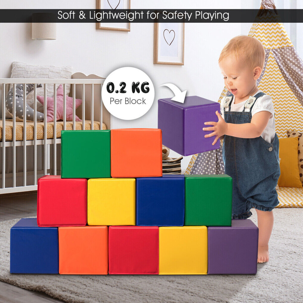 Blocks stimulate children's creativity and stacking skills, as well as learning colorful recognition and promoting gross motor skill development. Soft, sturdy expandable polyethylene foam with leather polyurethane cover can create a comfy and stimulating learning environment.