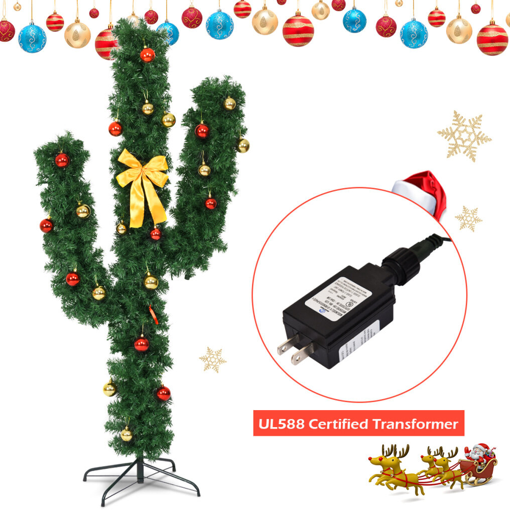 This pre-lit PVC artificial cactus Christmas tree is an ideal Christmas trimmings.