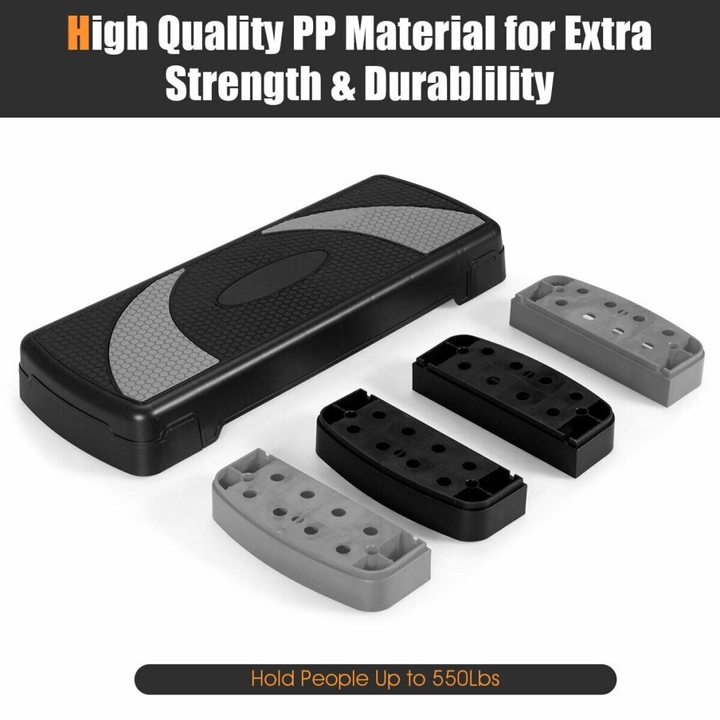● Sturdy and Durable Material: Made of high quality PP material, this aerobic stepper is wear-resistant and durable and is a reliable fitness tool. With its sturdy construction and strong load-bearing capacity, it can support up to 550 lbs weight, so you can exercise safely on it.