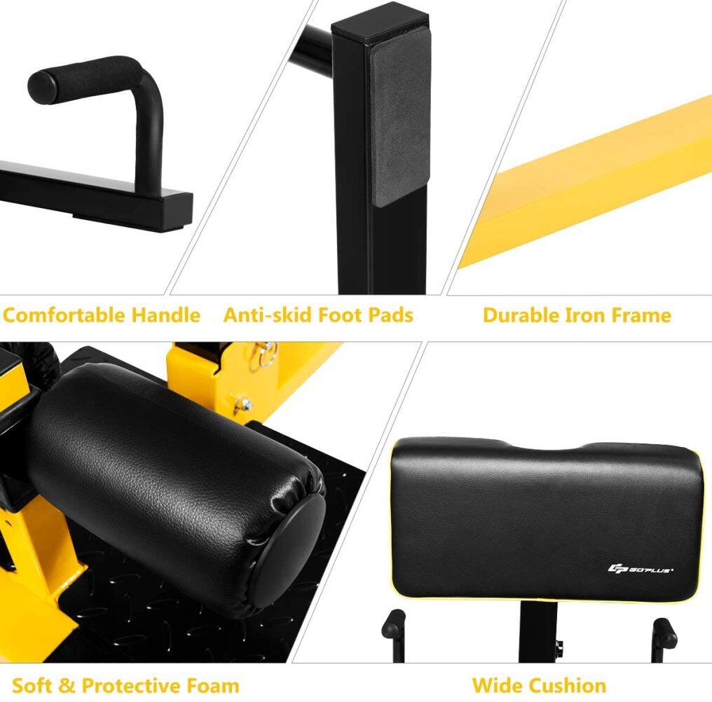 Easy to Move and Store: Users could move it easily due ti convenient wheels in the front. Then you can adjust sissy squat machine’s height into compact size to store it into corner.