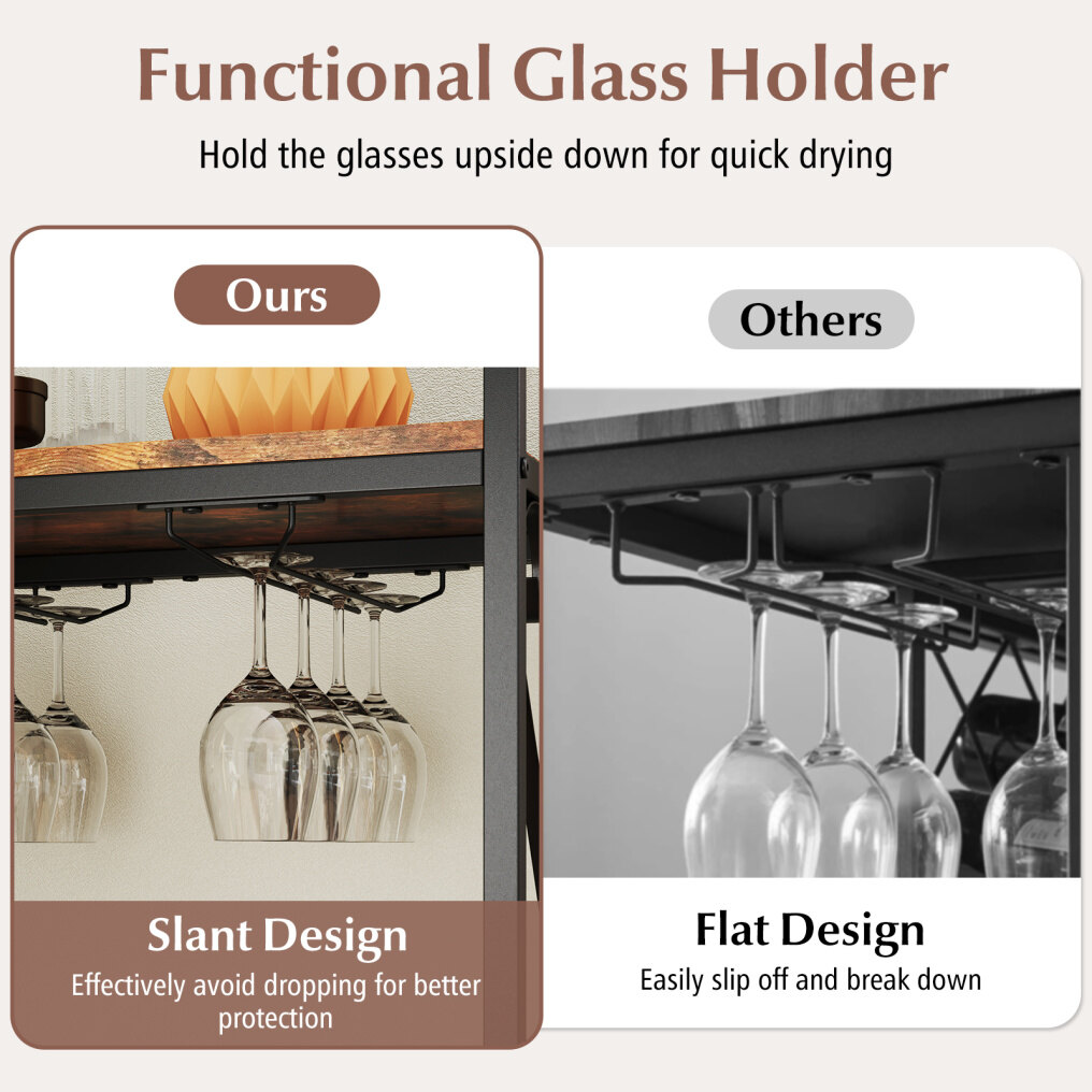 ● Functional Glass Holder: The glass holders of this wine rack will hold the glasses upside down for quick drying. Different from others with flat design which makes glasses easily slip off and break down, ours adopts slant design to effectively avoid dropping for better protection.