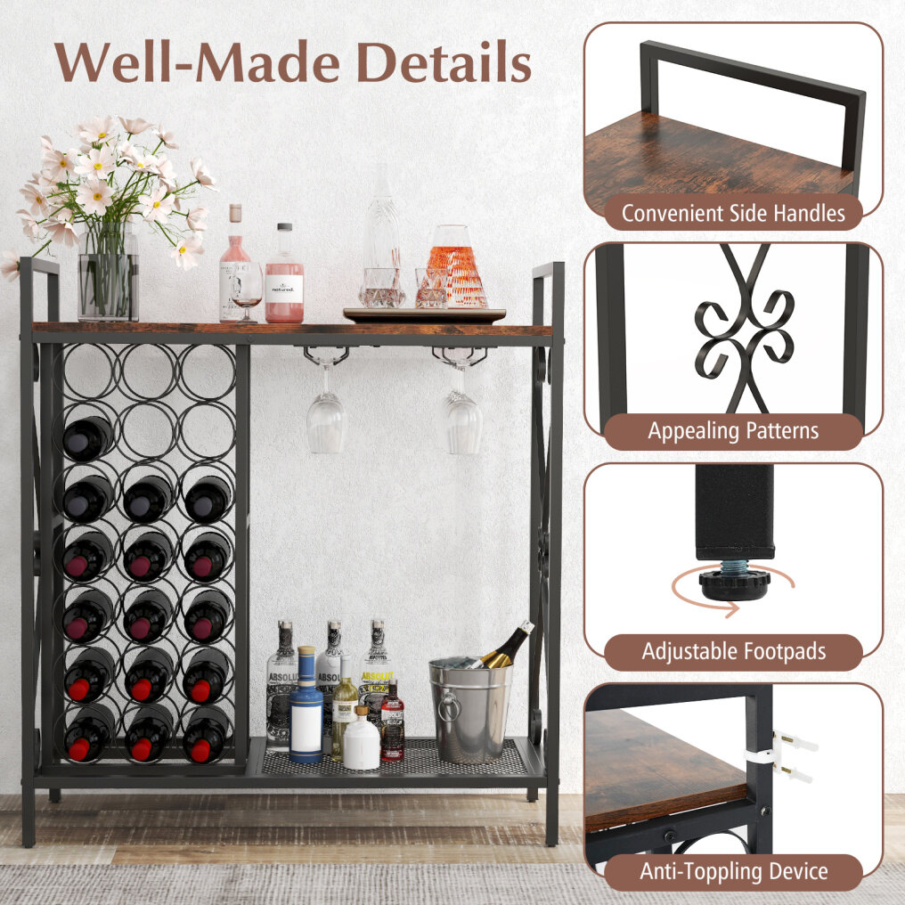● Elegant Indoor Addition: With rustic aesthetic and appealing patterns on the metal frame, this wine rack is not only a useful organizer but also an elegant addition to any dining room, kitchen, or entertainment area. Overall dimension: 36.5" x 15" x 40" (L x W x H).