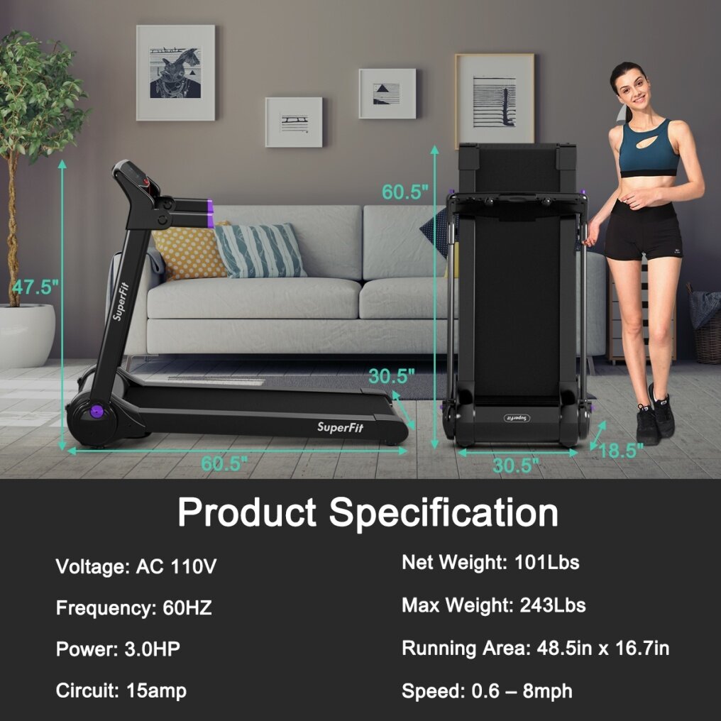 • Powerful 3.0HP silent motor allows you to run at the speed of 0.6-12.8 mile per hour