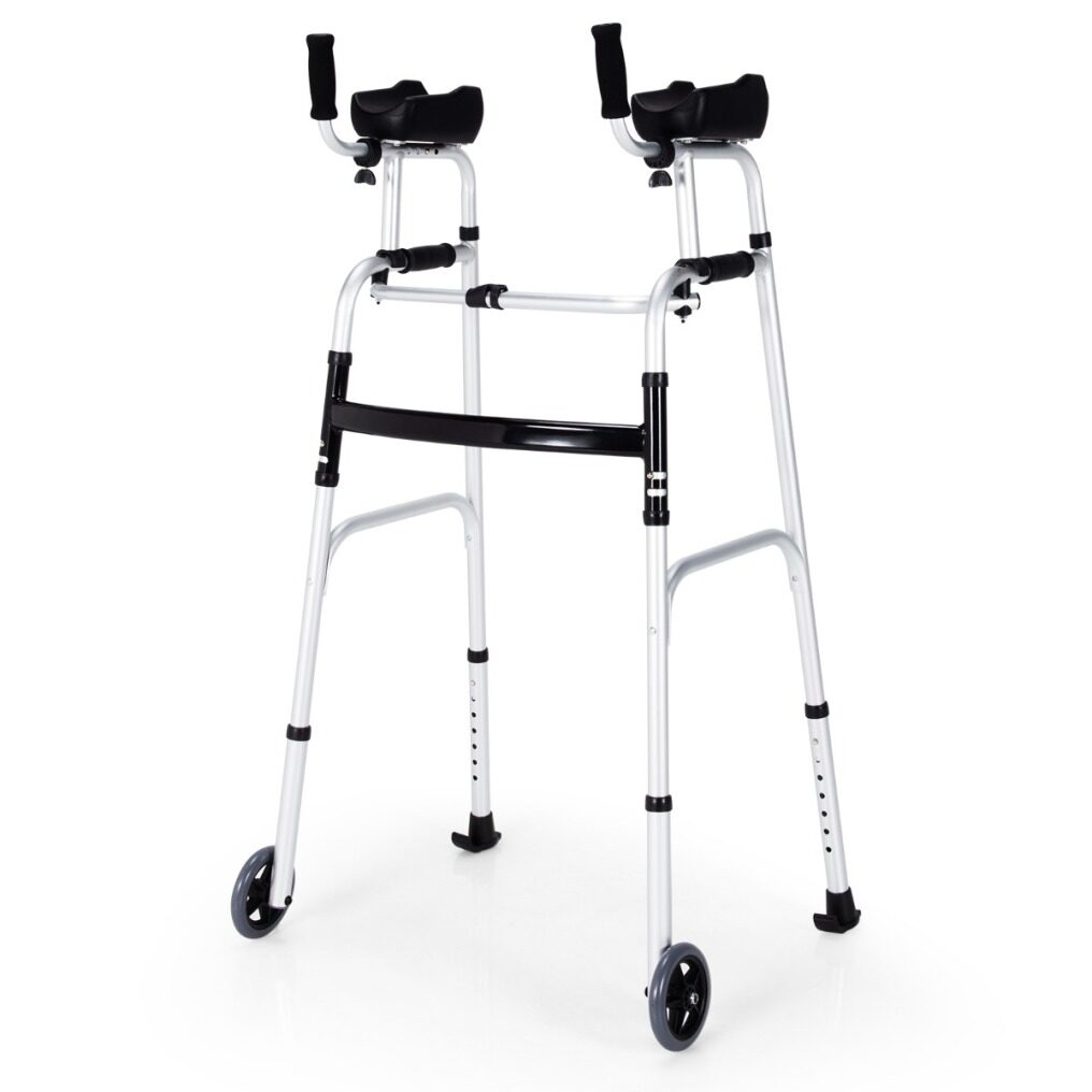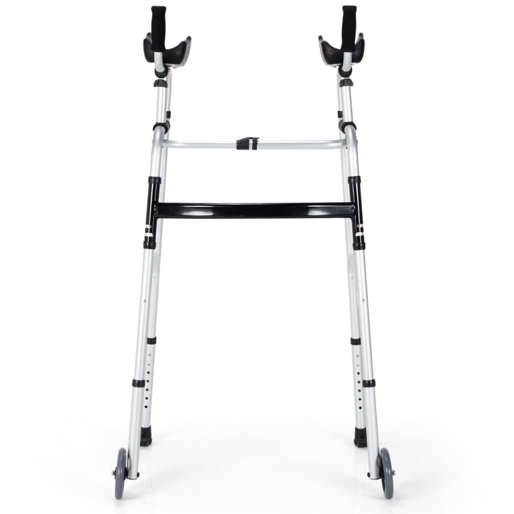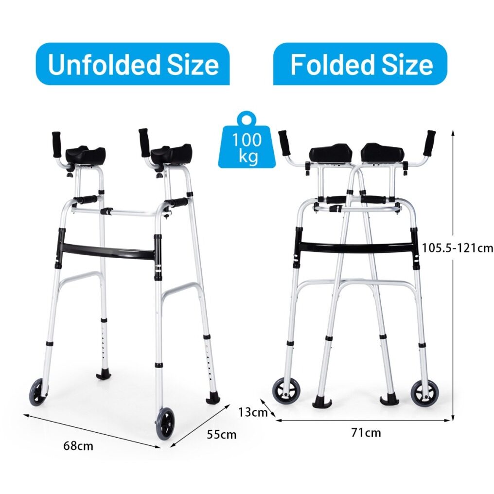 There is a portable wheel walker with armrest for the adults with limited mobility. This standard walker is made of firm aluminum alloy, which gives a stable construction and a high loading capacity of up to 100kg. And the universal wheels, brake wheels and soft armrest of this walking frame gives the comfort and safety guarantee. Our walker has 7-levle height adjustment function and 4-level adjustable armrest, which can be widely applied to people of different heights. In addition, the standard walker with one-click folding design is easy to carry and store. This adjustable folding standard walker provides more comfort and convenience, and will be the intimate companion for adults with limited mobility!